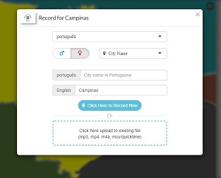 É fácil, é só você clicar no botão de “gravar”, escolher o local de onde está falando, a língua, sexo, e escolher se quer informar pelo nome da cidade ou por palavras e frases (nessa opção deve escrever a frase na língua que vai gravar, e também em inglês) e depois é só gravar, deixando sua contribuição e “brincando”. As frases são divertidas e muitas vezes expressam a realidade econômica e política do destino e você se inteira da opinião dos moradores também.
